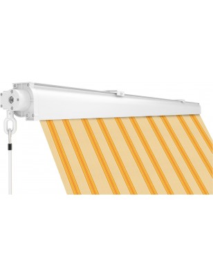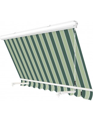 Tenda Cassonata si può fissare a Soffitto o a parete completa di bracci e manovella per l' apertura e tasselli specifici per il fissaggio.