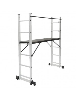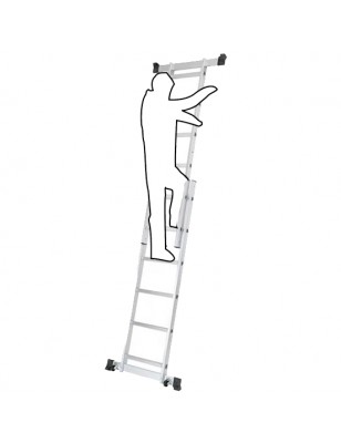 Scala multifunzione in alluminio, leggera e resistente, ideale per uso domestico e professionale. Utilizzabile in tre configurazioni: classica, estesa o piattaforma. Versatile, pratica e adatta anche a piani di lavoro disallineati.