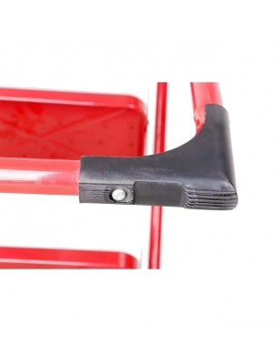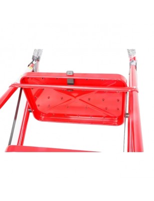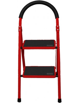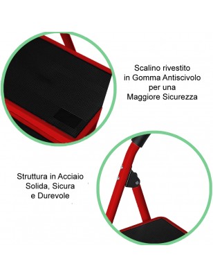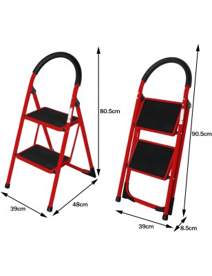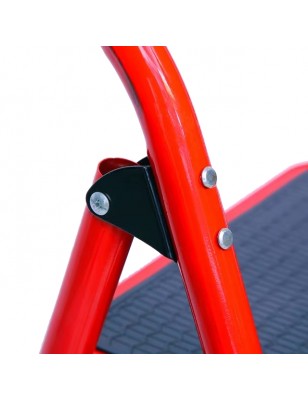 Scala multiuso pieghevole in acciaio  verniciato rosso, con gradini antiscivolo e maniglione ergonomico per una presa sicura. Compatta e facile da riporre, offre grande stabilità grazie ai piedini antiscivolo. Ideale per casa, regge fino a 150 kg. Disponibile in tre misure: 2, 3 o 4 scalini