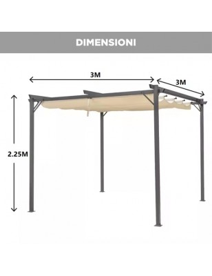 Questa pergola gazebo in acciaio e alluminio è disponibile nelle versioni 3x3 m e 3x4 m, per adattarsi sia a spazi esterni compatti sia ad aree più ampie.