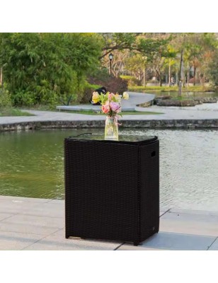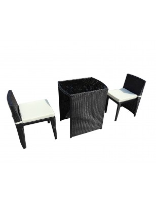 Composto da Tre pezzi. Due Poltrone ed un Tavolino con Ripiano in Vetro Temperato di Colore Nero, ideale per poggiarci Bevande, Cibo o Riviste, Ma anche per una Romantica Cena in Giardino.