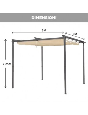 la pergola, di Colore Beige è Impermeabile e realizzata in Poliestere da 180 gr/mq impermeabile rivestito in PA
