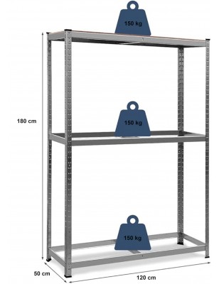 Ogni ripiano può caricare un peso di 150kg, 3 ripiani in totale 450kg