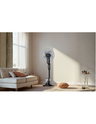 Grazie al serbatoio da 3,2 litri e al nebulizzatore frontale, il ventilatore genera una finissima nebulizzazione d’acqua che aiuta ad abbassare la temperatura percepita, rendendo l’aria più fresca senza bagnare persone o superfici. La funzione nebulizzatore può essere utilizzata da sola, quando vuoi solo la freschezza della nebulizzazione, oppure insieme alla ventilazione tradizionale per un effetto rinfrescante ancora più intenso.
